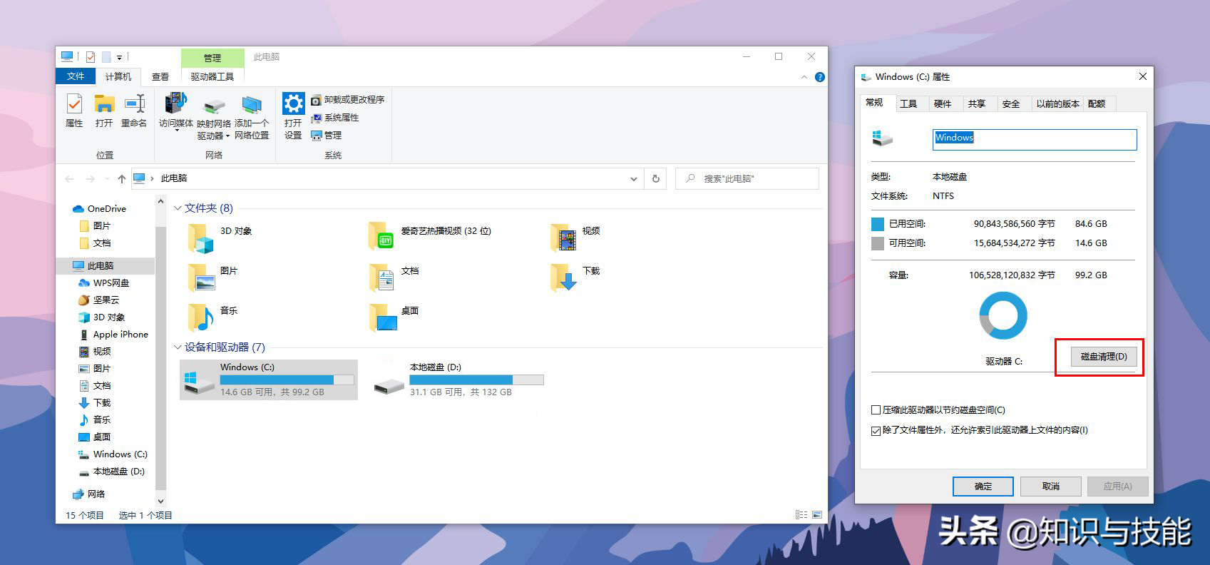 打开【此电脑】,然后在C盘上点击鼠标右键选择【属性】,在C盘属性窗口下点击【磁盘清理】。