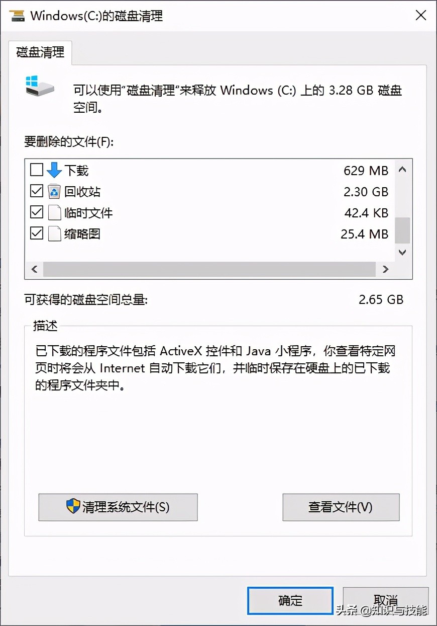 电脑开始自动扫描,扫描完成时勾选需要清理的垃圾文件,如Windows更新清理、临时文件、回收站等等,最后点击【确定】,磁盘清理就完成了。