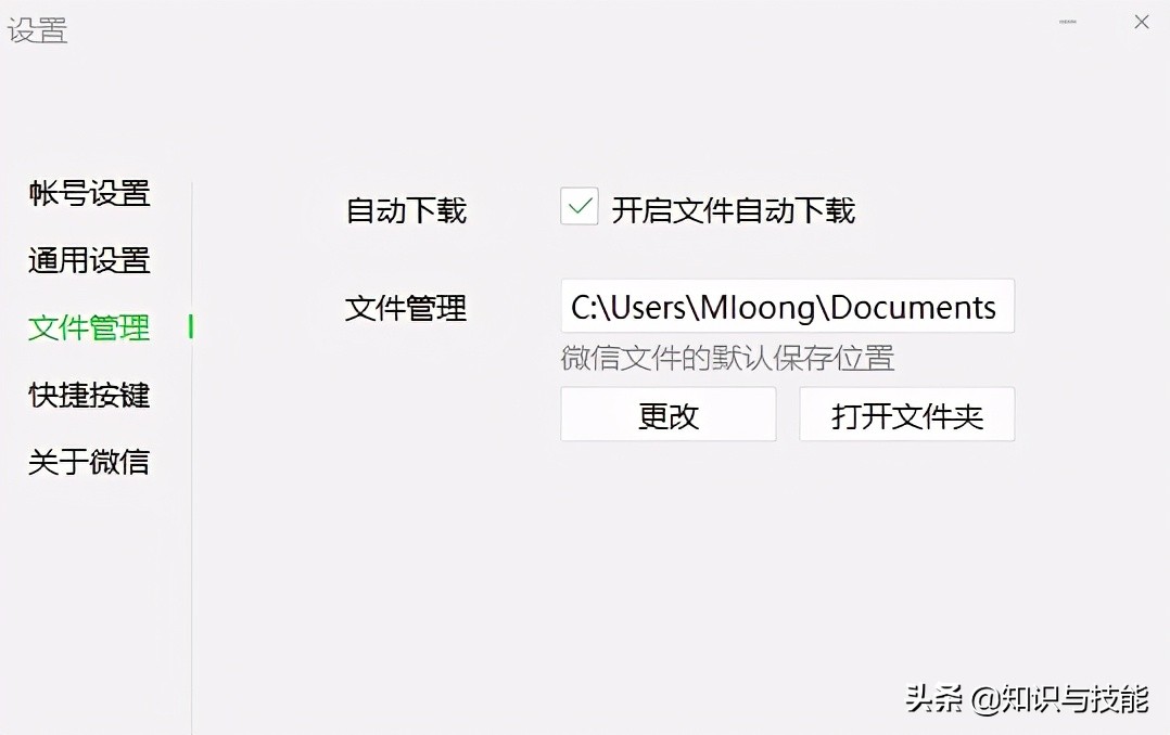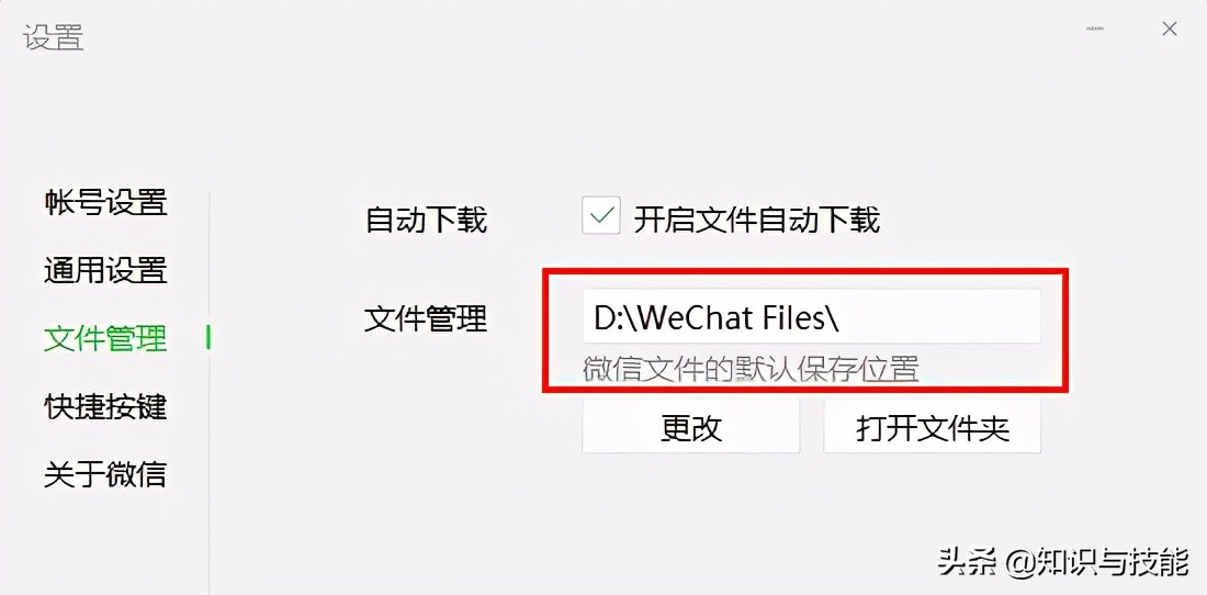 然后在将微信的文件管理的默认文件夹,设置到其他盘中。
