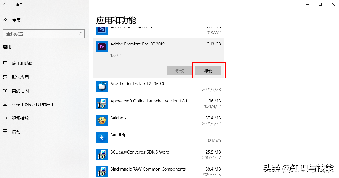 就进入了【应用和功能】页面,在这里你可以看到电脑中所有安装的电脑软件,点击你想卸载的软件,然后点击【卸载】就可以了。