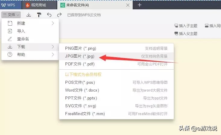 10、思维导图做好后,点击左上角“文件”“下载”“JPG图片”保存思维导图。这样保存后,就不能修改。如果只是暂存,还要修改,或者发给其他人修改。那么就要选择“POS文件”保存。