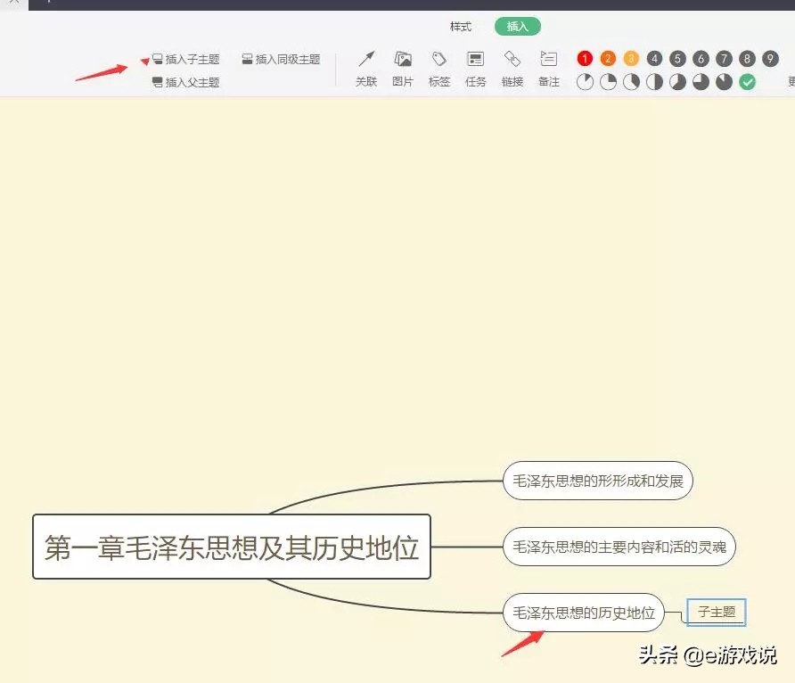 9、选中“主题”后,插入“子主题”。