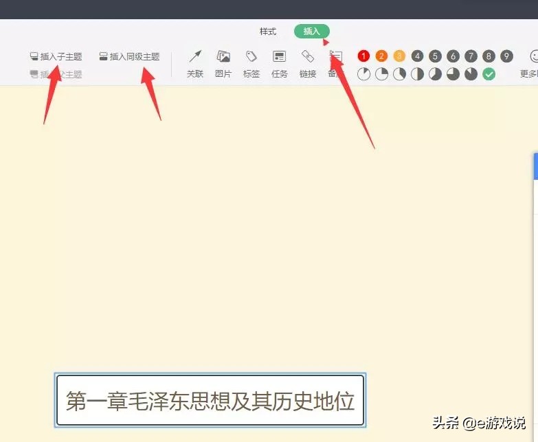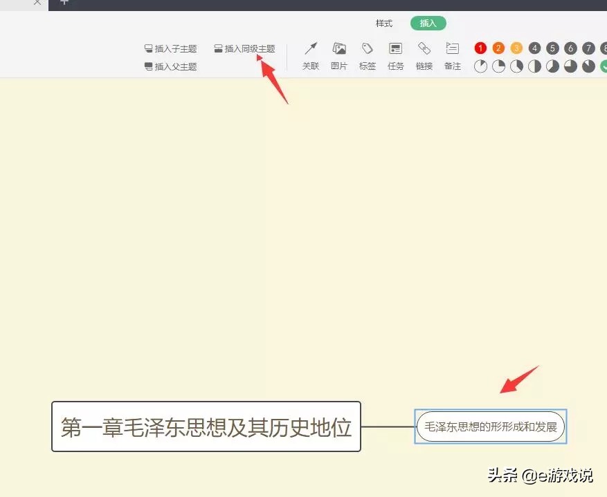 8、选中主题后,插入“同级主题”。