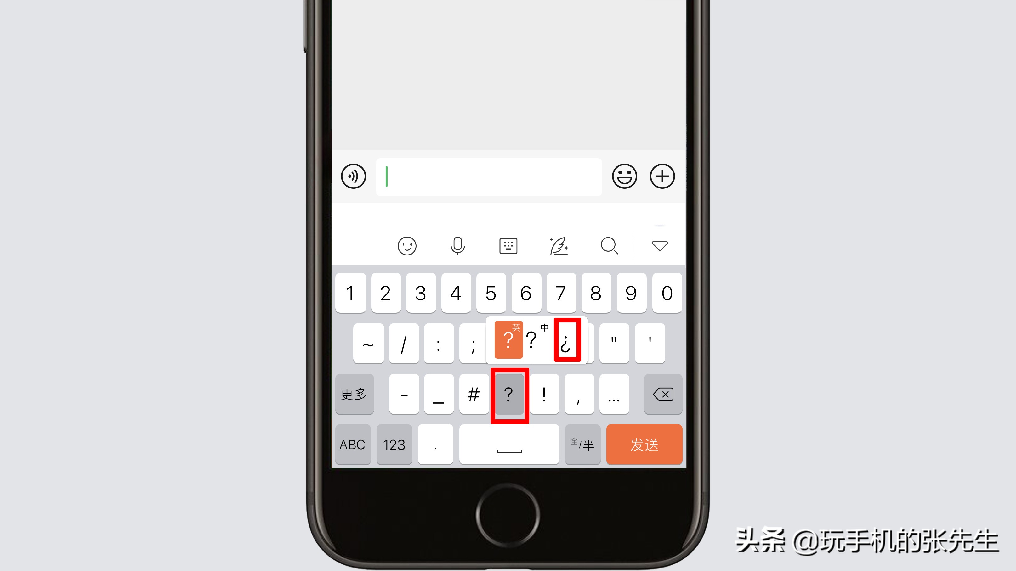 4、在符号输入界面,长按“?”,待弹出菜单后滑动屏幕选择“¿”,然后松开手指,即可完成操作。