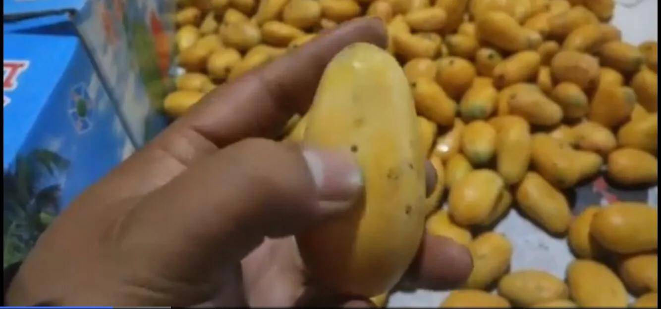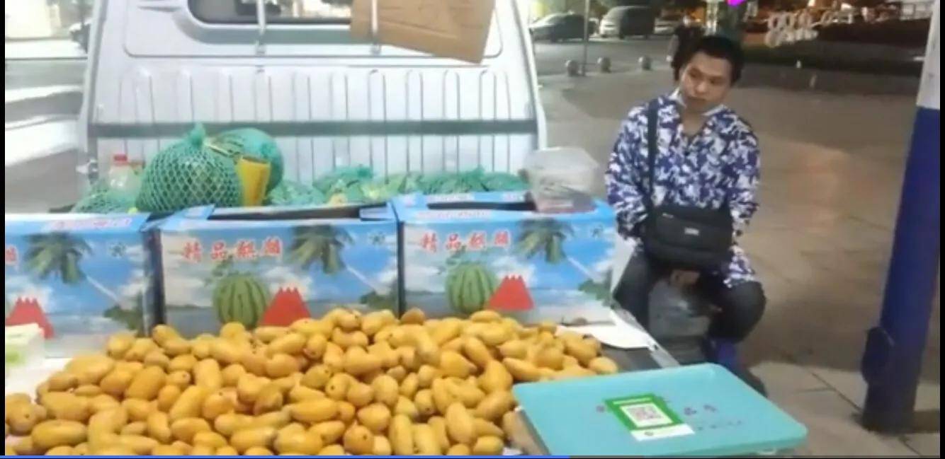 其实摆摊卖水果可以也是可以的,像我们这种货车卖水果,大家想做的话,你要做好心里准备,不是每天的收入都很高。而且水果风险也是比较大的,像有些水果它不经放,一般水果你卖个2天左右,基本到后面就会慢慢开始外表没有那么光滑好看,慢慢变坏了。像我这次拿的这个芒果还有西瓜,西瓜的话可能卖个三四天都没有问题,当这个芒果的话,我到现在已经卖了2天了,头一天拿来的时候表面是十分光滑的,颜色也是特别好看的,当是今天的话芒果已经慢慢变颜色了,表面开始出现黑色斑点了。如下图