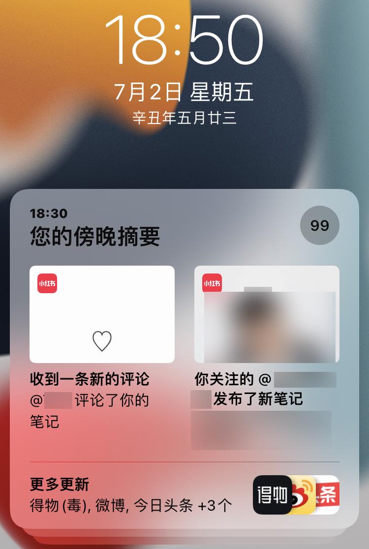 设置完通知摘要后,效果也比较显著,立即推送的APP会显示在通知中心顶部显示,而后才是通知摘要的内容。不会错过重要推送,又不会被非必要通知打扰。