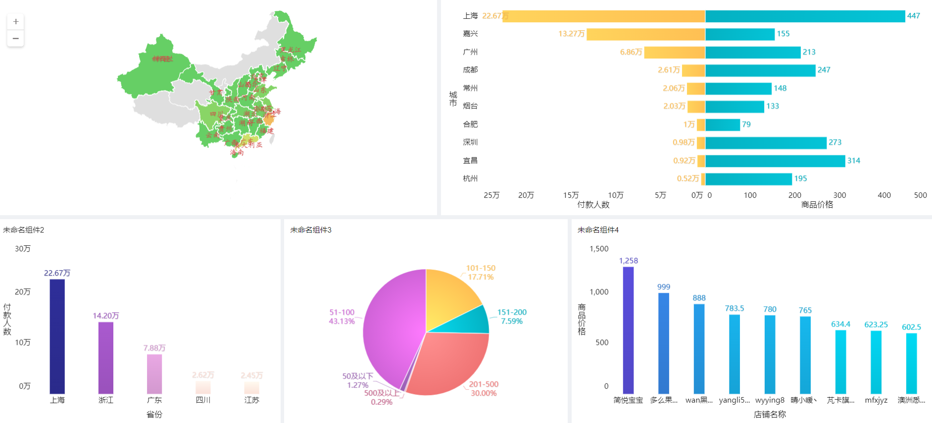 因此我在淘宝上用python爬取了3000条数据,然后导入到了FineBI中进行可视化分析,最终制作出了下面这样一份可视化报告: