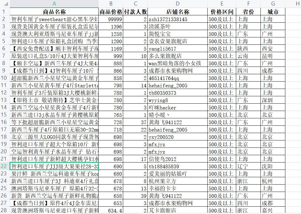 听说最近车厘子的价格突然猛跌,之前很多人梦寐以求的“车厘子自由”,现在都能实现了。其实车厘子的价格下降,主要原因是进口货运成本的大大降低,为了找到车厘子最佳的购买方式,我决定用python+BI进行数据分析。