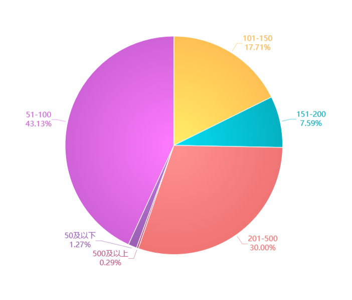 数据表里将价格区间分为“50以下”、“50-100”、“100-150”、“150-200”、“200-500”、“500以上”等,可以看出来占比最大的价格区间是“50-100”,这应该属于平民价格了;值得注意的是“200-500”的价格占比也高于“100-150”。