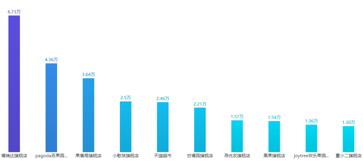 可以看出来国内车厘子最大的销量来自上海,以及浙江、广东两省,西藏、青海、内蒙古等省份都没有销量,基本上来说沿海地区的销量要高于内陆。