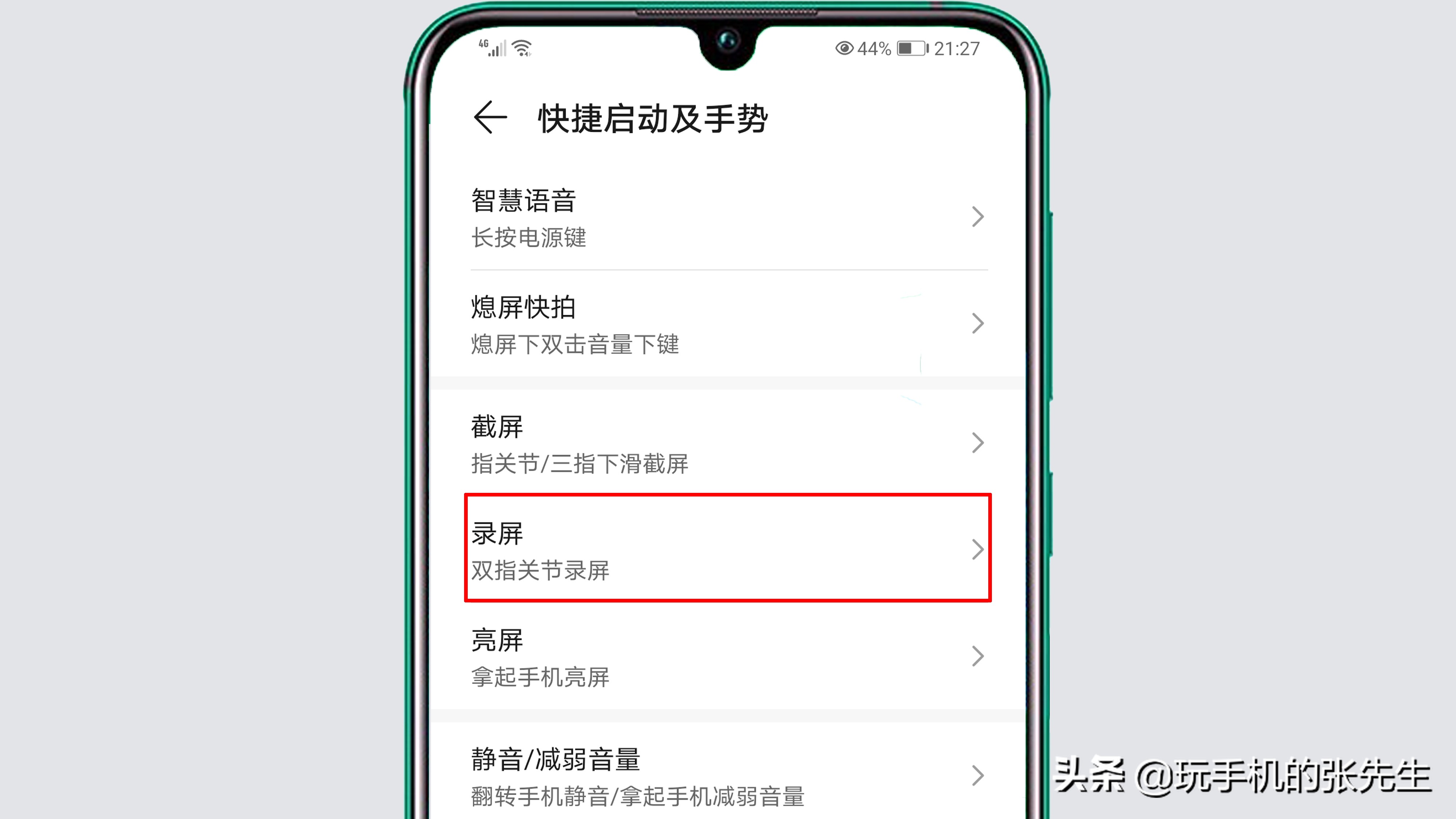 4、在“快捷启动及手势”功能列表中,点击“录屏”。