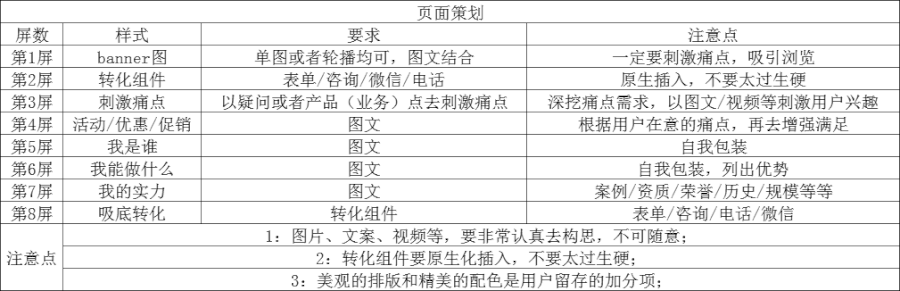 8、不能忽视主次。重要的点要先说,不重要的点后面说。在落地页策划里,先就要抛出亮点,不重要的点一般放在后面,可说可不说。