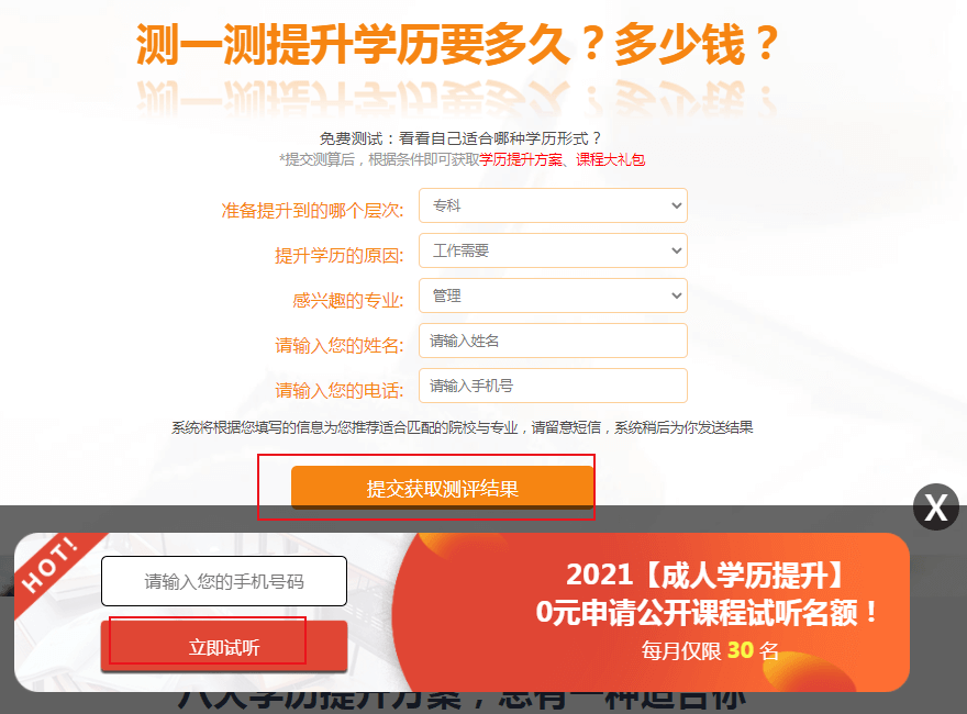 2、提交按钮不要太过生硬直接写“提交”,要有诱导性,比如“免费测评”、“免费查询”、“0元申请”、“免费申请”等等;