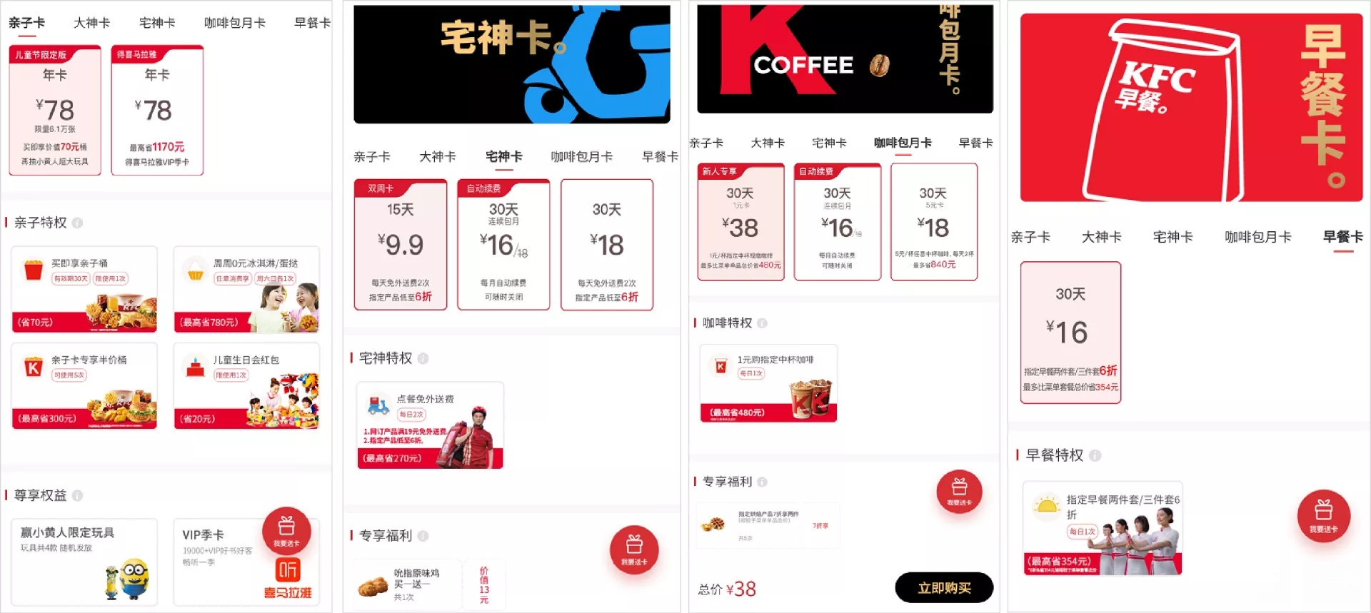 单单大神卡这一种付费会员,肯德基就推出了多种购买链接。