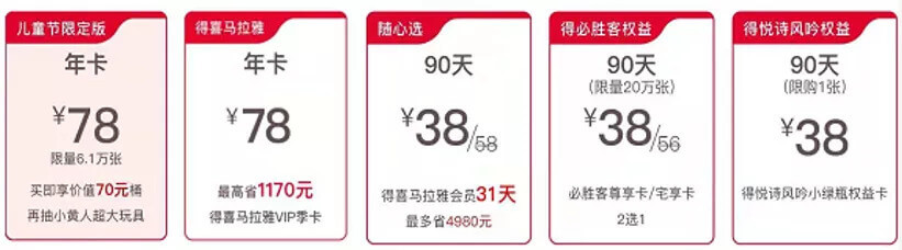 比如,常规大神卡是30元/90天,但是用户只需要加 8 元,就可以得到喜马拉雅一个月会员,或者必胜客尊享卡/宅享卡等权益……