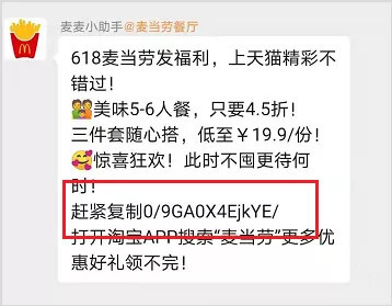比如,麦当劳有的购买链接不是微信小程序而是淘宝的购物码,用户想要下单就必须复制购物码,打开淘宝 app 然后在淘宝下单使用……
