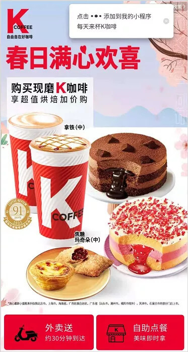 比如,为咖啡爱好者提供了红 K 馆小程序,用户可以在里面下单各类咖啡和烘焙甜品。