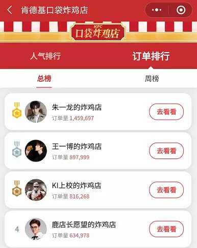官方数据显示,肯德基的“口袋炸鸡店”上线三个月的时候,交易总额就超过目标额的 900%。