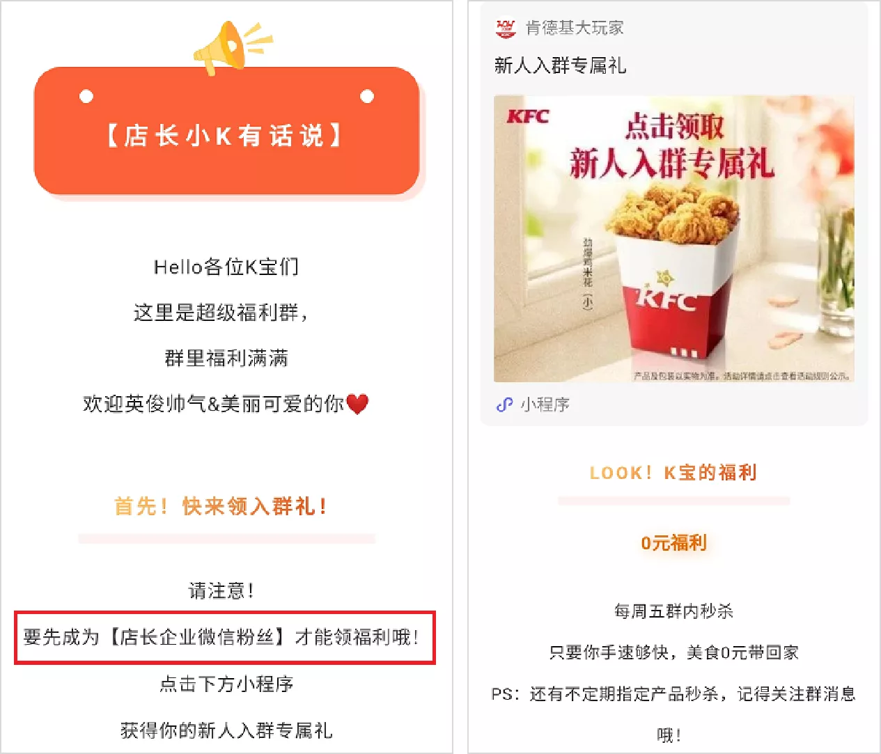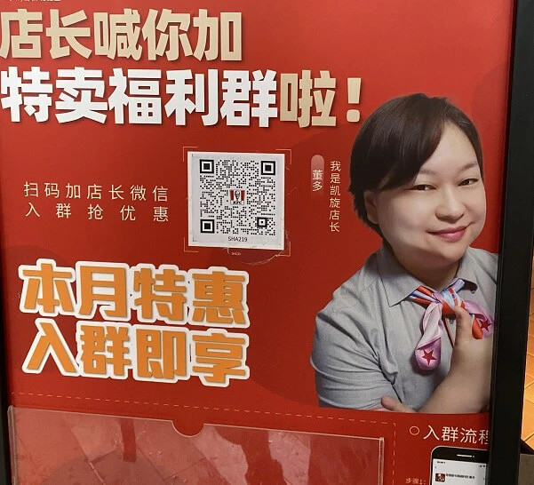 肯德基没有通过人力劝说,而是通过海报上的优惠信息,引导用户扫码加群。