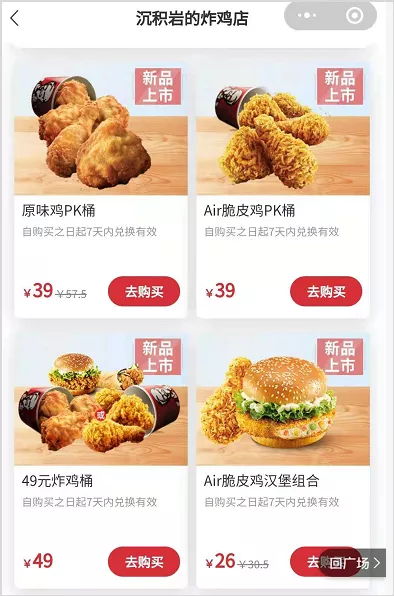 口袋炸鸡店是肯德基的一个下单小程序,用户可以在里面购买各种兑换券,然后凭券去线下门店兑换产品。