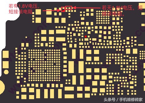 还有一种情况,如果测试点上有1.8V电压,短接两个电阻仍无法修复,那么则是CPU本身坏或虚焊。