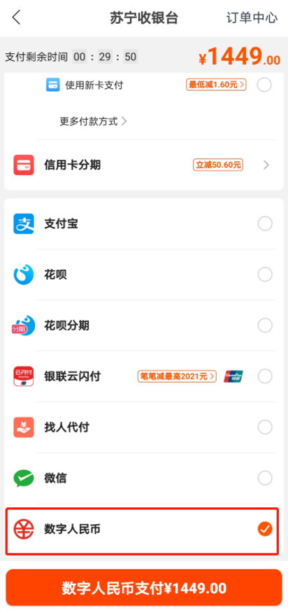 IT之家 5 月 13 日消息 苏宁易购正式开通了数字人民币支付服务。即日起,消费者在苏宁易购购物时,可以使用数字人民币支付了。
