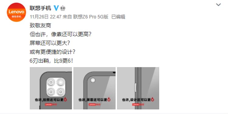 早于11月20日,也是Redmi Note9官宣时,联想手机官方就表示“3剑齐发?还是6刃出鞘?欲与江湖试比高,高处相见“,看样子联想要与Redmi Note9系列手机对刚到底了!
