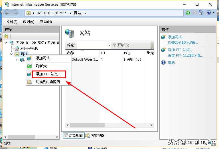 找到IIS管理控制台,添加FTP站点。