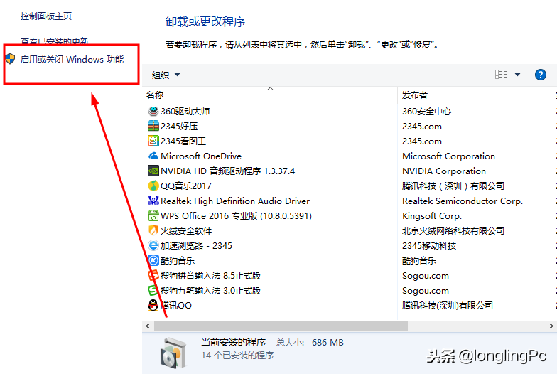 找到启用和关闭windows功能