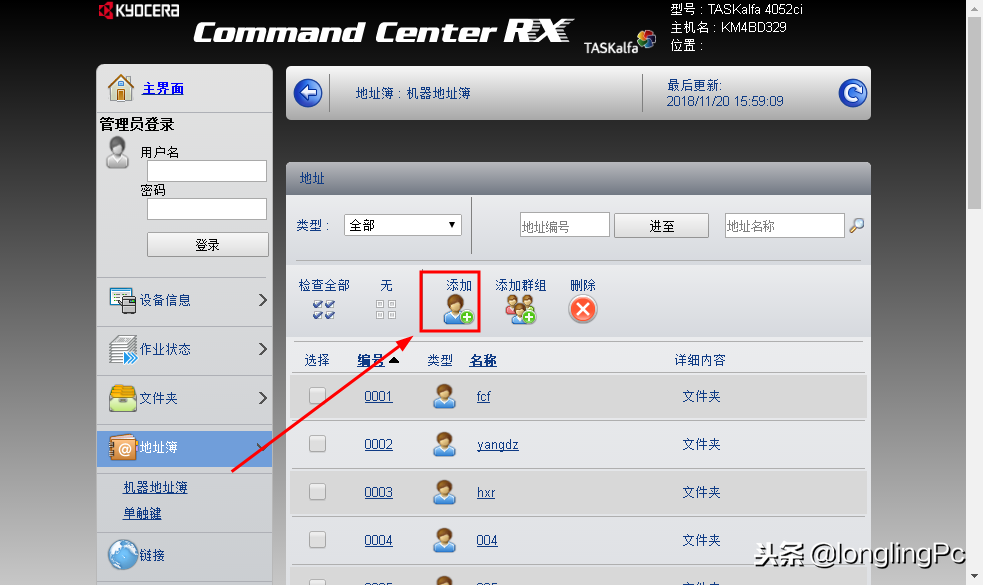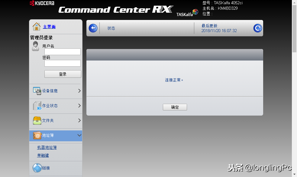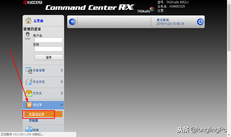 进入复印机地址,本例为192.168.1.254