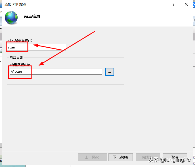 我们把站点名称设置scan,目录为f:scan