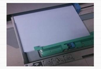 2、将单面复印完毕的纸张取出,放入复印纸盒内(注意:底边冲里面,空白向上的放置方式)。